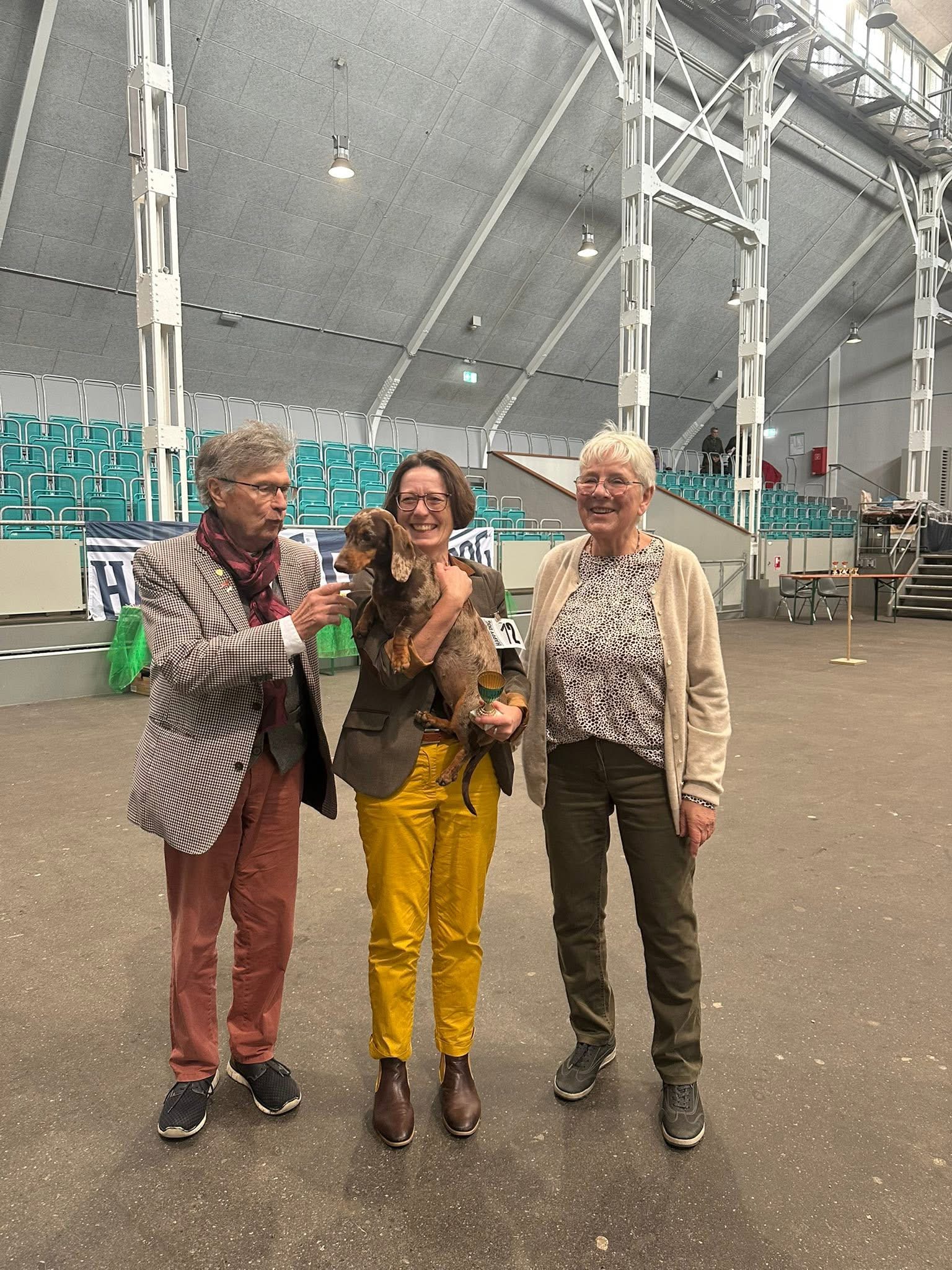 Das war am 13.09.25 ein sehr besonderer Dackel Tag. Meine erste Körschau mit meinem ersten Dackel. Und dann gleich so ein toller Erfolg. Die Augenuntersuchung war hervorragend und bei der Beurteilung war alles bestmöglich, so dass Mathilda mit vorzüglich gekört wurde. Es gab sogar einen kleinen Pokal. Queeny blu Marble S vom Hasenklee FCI (Libelle Lillyfee vom Hasenklee FCI x Ulan vom Rehsprung) Anja, die Züchterin, wäre stolz auf uns gewesen… Es war eine sehr gut organisierte Veranstaltung vom LV Nord des DTK mit sehr netten Menschen und tollen Richtern, die zu mir als Erstlingsführerin alle sehr freundlich, offen und informativ waren. Das ist in der heutigen Zeit nicht selbstverständlich. Vielen Dank für den schönen Tag.
